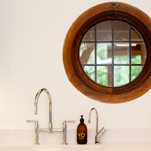 We also made a bespoke utility room in a simple shaker lay-on design painted in F&B drop cloth. Doors to floor to cover up floor standing appliances.